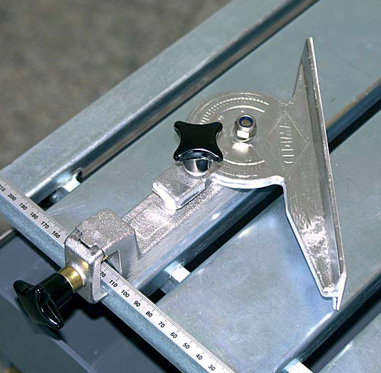Der Winkelanschlag ermöglich die Herstellung von schrägen Schnitten auf Tischsägen mit starrem Pendelschneidkopf. Er wird am Anschlag des Schneidtisches der Tischsäge befestigt. Der Winkelanschlag ist beidseitig bis zu 90° schwenkbar. Der benötigte Winkel kann mit Hilfe der gut ablesbaren Skala leicht eingestellt werden.